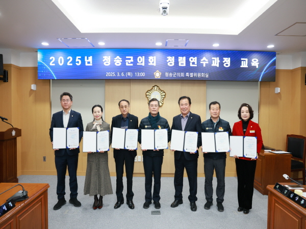 (경북=NSP통신) 조인호 기자 = 청송군의회(의장 심상휴)는 지난 6일 군의회 특별위원회실에서 의원 및 사무과 직원을 대상으로 국민권익위원회가 주관하는 ‘2025년 청송군의회 청렴연수과정 교육’을 실시했다.
