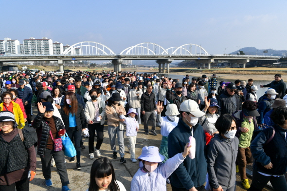 걷기 코스는 영주교 아래 인라인스케이트장을 출발해 제1가흥교, 제2가흥교를 지나 한정교를 반환점으로 돌아오는 총 7km 구간으로 구성됐다.