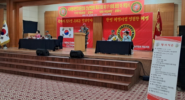 지회는 전우회 헌장낭독과 유공자 포상 임명장 수여 목포지회기 전달 축사 군가제창 등 순서로 진행했다.