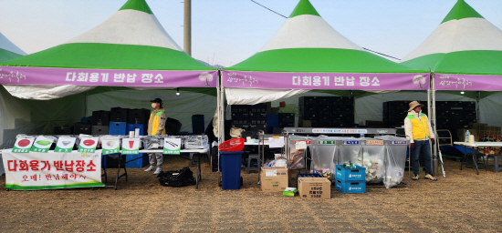 시는 둔치주차장~축제장 간 무료셔틀버스 운영으로 차 없는 안전하고 쾌적한 축제장 만들기에 힘쓰고 있으며 접시, 컵, 수저 등 총 11종의 다회용기를 공급~세척~재공급하는 시스템을 도입해 일회용품 없는 친환경 축제장 조성에 구슬땀을 흘리고 있다.