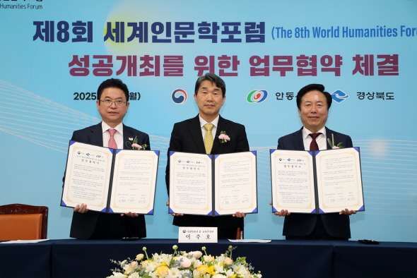 (경북=NSP통신) 김오현 기자 = 안동시(시장 권기창)는 10일 국립경국대 국제교류관에서 올해 하반기 개최되는 제8회 세계인문학포럼의 성공적 개최를 위해 교육부 및 경상북도와 업무협약을 체결했다.