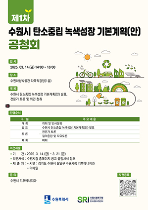 수원시, 녹색성장 이끌 탄소중립 기본계획 시민 의견 듣는다