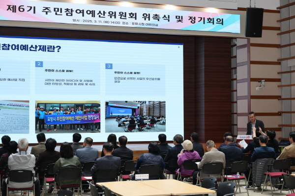 (경북=NSP통신) 조인호 기자 = 포항시는 11일 시청 대회의실에서 주민참여예산위원회 위원 38명이 참석한 가운데 ‘2025년 제6기 주민참여예산위원회 제1차 정기회의’를 개최했다.