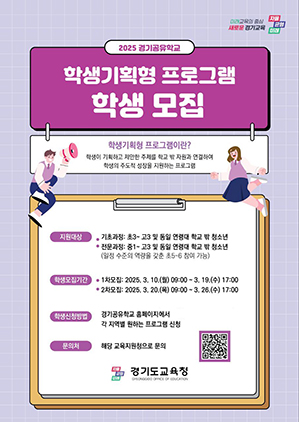 (경기=NSP통신) 조현철 기자 = 경기도교육청(교육감 임태희)이 경기공유학교 ‘2025 학생기획형 프로그램’ 참여 학생을 모집한다.