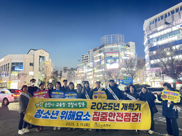 이번 점검은 순천시청, 순천경찰서, 순천교육지원청이 함께 유관기관 합동으로 학기초 어린이들의 안전한 학습환경을 조성하기 위해 초등학교 주변 유해환경을 집중 단속하고 어린이가 안심하고 학교생활을 할 수 있는 사회적 분위기를 조성하고자 “아이 먼저” 캠페인도 같이 진행했다.