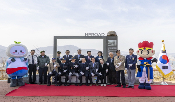칠곡군과 대구지방보훈청은 ‘히어로드(HEROAD) 포토존’ 제막식을 지난 13일 자고산 평화전망대에서 개최했다. (사진 = 칠곡군)