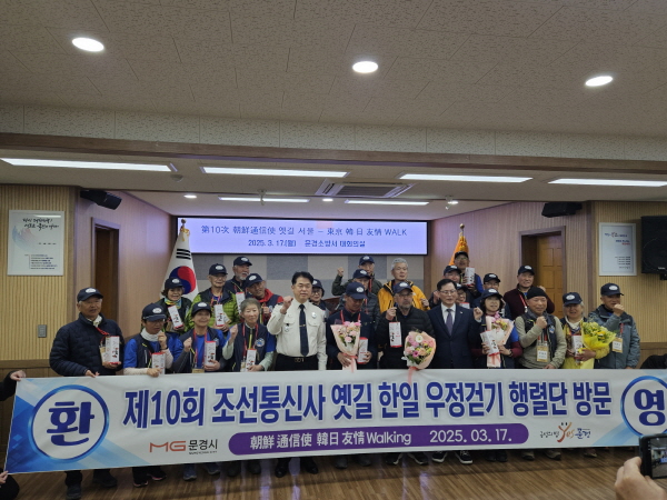 조선통신사 옛길 한·일 우정걷기 행사는 근대 외교사에 큰 역할을 한 조선통신사가 다녔던 옛 발자취를 따라 걸어보며 한·일 양국의 우호 증진 및 역사적 관계의 이해와 교류에 기여할 목적으로 조선통신사 파견 400주년 기념으로 2007년 처음 시작해 격년으로 열려 지난 16일 한국체육진흥회(회장 선상규) 회원들과 일본걷기협회(회장 엔도야스오) 회원 등 행렬단 30여 명이 문경읍에 도착했다.