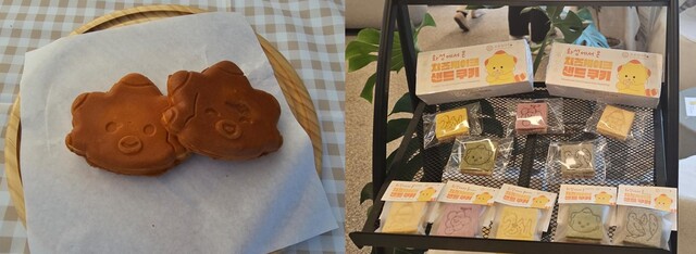 NSP통신-지역상징물을 활용한 디저트 제품인 코리요빵(왼쪽), 치즈케이크 샌드쿠키. (사진 = 화성시)