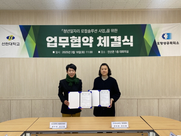 (경북=NSP통신) 조인호 기자 = 포항상공회의소(회장 나주영)는 18일 선린대학교 인산관 회의실에서 선린대학교 취업창업지원센터와 지역청년 일자리 창출 및 청년 취업 지원사업 활성화를 위한 업무협약을 체결했다.