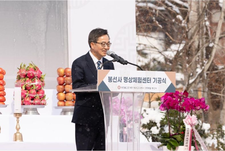 김 지사는 이날 오전 봉선사 육화당에서 열린 대한불교조계종 봉선사 명상체험센터 기공식 축사를 통해 “경쟁과 갈등이 심화한 사회에서 화합과 치유가 절실하며 오늘 기공식을 가진 선 명상체험센터가 국민의 마음 치유와 안식에 기여할 것으로 기대한다”라며 이같이 말했다.