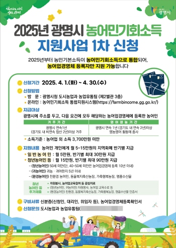 광명시, “농어민 기회소득 1차 신청하세요”
