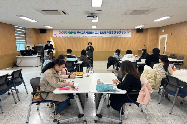 (경북=NSP통신) 김대원 기자 = 경산교육지원청(교육장 박경화)은 지난 18일 경산교육지원청 학생교육지원관에서 경북남부권 특수교육지원센터 교사 및 치료사를 대상으로 특수교육대상학생 진단·평가 전문성 향상 연수를 실시했다.