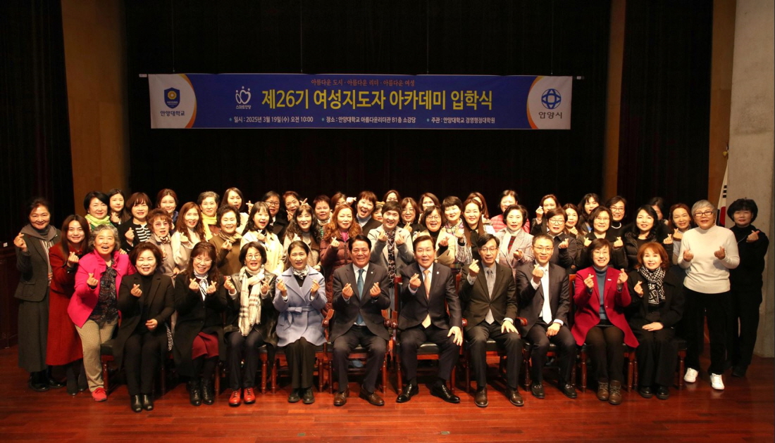 NSP통신-19일 안양대학교 아름다운리더관 소강당에서 제26기 안양시 여성지도자 아카데미 입학식이 열렸다. 사진은 단체 기념촬영 모습. (사진 = 안양시)