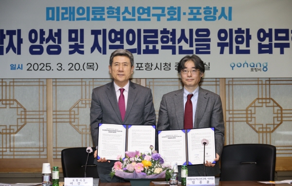 (경북=NSP통신) 조인호 기자 = 포항시와 미래의료혁신연구회가 지역의료 혁신과 의사과학자 양성을 위해 맞손을 잡았다.