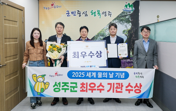 (경북=NSP통신) 김대원 기자 = 성주군은 지난 21일 영천시 오리장림 문화강당에서 열린 ‘2025 경상북도 세계 물의 날’ 기념식에서 ‘2025 수질개선 및 상하수도 우수시책’ 부문 최우수상과 시상금 300만 원을 수상했다.