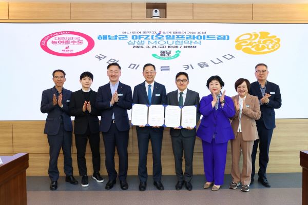 협약에 따라 해남군과 OFZ는 신메뉴 개발과 농수산물 홍보 및 판로개척, 온라인 유통과 글로벌 시장 수출에 적극 협력해 농가와 기업의 동반 성장을 위한 상호 협력체계를 구축해 나가기로 했다.
