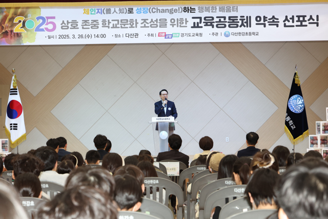 (경기=NSP통신) 조현철 기자 = 경기도교육청(교육감 임태희)이 26일 다산한강초에서 ‘2025 상호존중 학교 문화 조성을 위한 교육공동체 약속 선포식’을 개최했다.