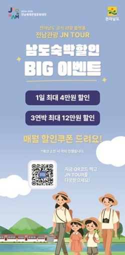 전남도 외 주소지 둔 관광객에게 월 1회 숙박료 최대 5만원 할인 제공