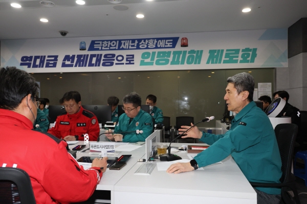 회의에 앞서 이강덕 포항시장은 26일 새벽 죽장면 체육센터와 상옥노인복지회관에 마련된 주민대피소를 찾아 대피소 운영 상황과 산불 대응 상황을 직접 점검하고 대피 중인 주민을 위로했다.