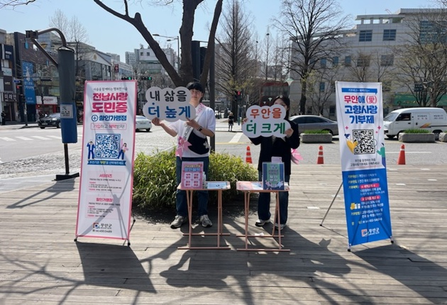 (전남=NSP통신) 오환주 기자 = 무안군은 지난 26일 전남대학교를 방문해 지역 주민과 학생들을 대상으로 고향사랑기부제와 전남 사랑애(愛) 서포터즈에 대해 설명하고 참여 혜택을 홍보했다고 27일 밝혔다.