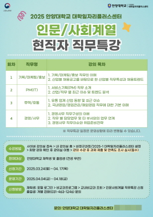 2025년 인문 사회계열 직무특강 및 실무 멘토링 프로그램 포스터. (이미지 = 안양대학교)