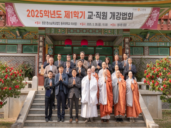 (경북=NSP통신) 조인호 기자 = 동국대학교 WISE캠퍼스 정각원(원장 법천스님)은 지난 28일 오후 3시 교내 정각원에서 2025학년도 1학기 교직원 개강 법회를 봉행했다.