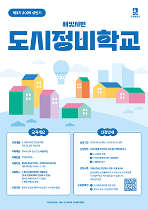 (경기=NSP통신) 조현철 기자 = 경기 수원시(시장 이재준)가 도시정비 시민 전문가를 양성하는 ‘새빛시민 도시정비학교’ 제3기 교육생을 4월 1일부터 30일까지 모집한다.