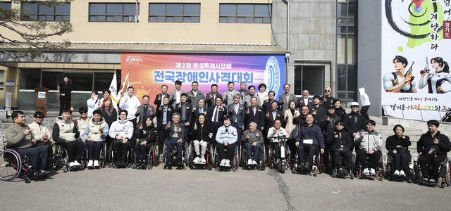 NSP통신-31일 경기도사격테마파크에서 열린 제2회 화성특례시장배 전국장애인사격대회 개회식에서 참석자들이 기념촬영을 하고 있다. (사진 = 화성시)