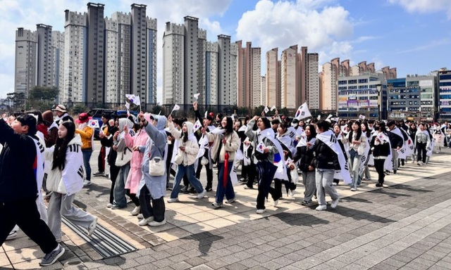 NSP통신-29일 열린 2025 발안장터 만세운동 기념문화제에서 시민들이 향남2지구중앙광장부터 화성종합경기타운까지 행진하며 발안장터 만세운동을 재현하는 모습. (사진 = 화성시)