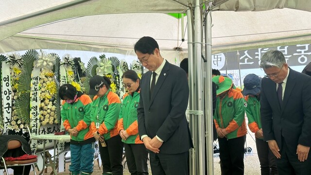 정명근 화성시장(가운데)이 우호도시인 경북 영양군 합동분향소를 방문해 희생자들을 추모하고 있다. (사진 = 화성시)