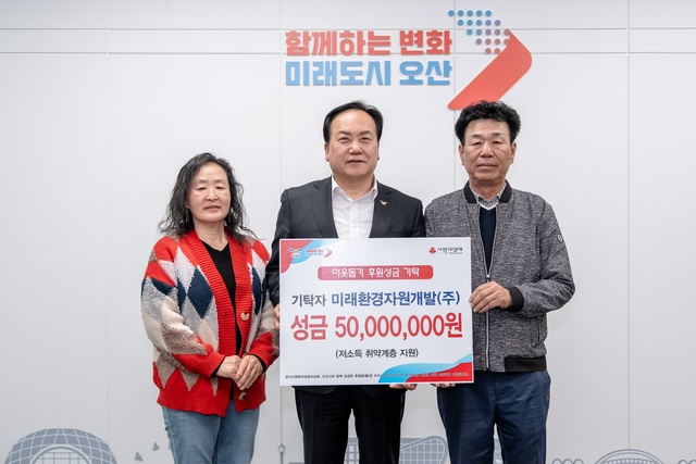 성금은 지역 내 취약계층을 위한 복지 사업에 사용될 예정이며 미래환경자원개발은 이번 나눔을 계기로 ‘오산시 명예의 전당’에 등재됐다.