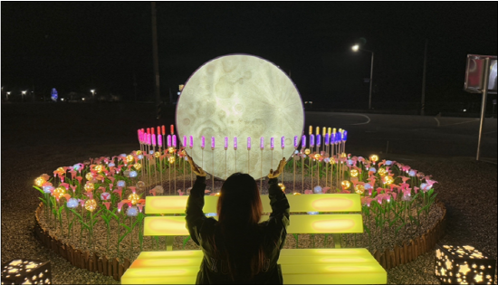 특히, 일몰 이후에는 달과 별, 꽃과 벤치까지 일제히 신비로운 야간경관을 연출해 지나는 사람들이 발길을 멈추고 인증샷을 남기는 포토존으로 인기를 끌고 있다.