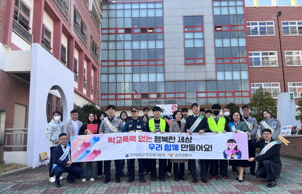 이번 캠페인은 순천교육지원청, 순천시, 풍덕중학교 교사 및 학생회 등 50여 명이 함께 참여해 학생들에게 학교폭력 예방과 교통안전의 중요성을 강조했다.