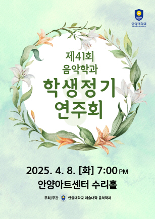 안양대 음악학과 학생들이 준비한 이번 제41회 정기연주회는 봄 향기를 듬뿍 담아 전해주는 사랑스럽고 아름다운 연주회가 될 것으로 기대된다.