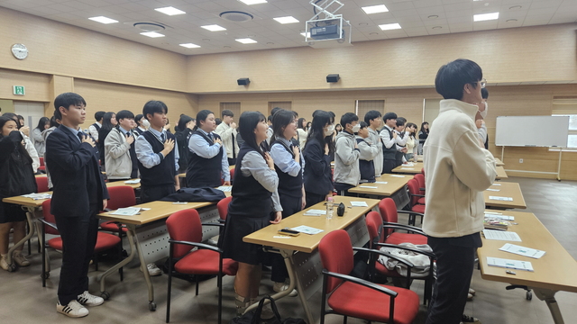 2일 열린 ‘2025년 학교 4-H 신입회원 입단식’에서 학생들이 입단서약을 하고 있다. (사진 = 수원시)