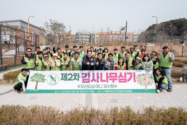 앞서 시는 지난해 11월 시민 400여 명이 동참해 마련한 1차 기탁금으로 오산천에 감나무 210주, 사과나무 200주가 식재했으며 이날 2차 기탁금과 자연보호힐링의 숲 가꾸기 사업 보조금을 통해 사과나무 70주를 달빛수변공원 일원에 식재했다.
