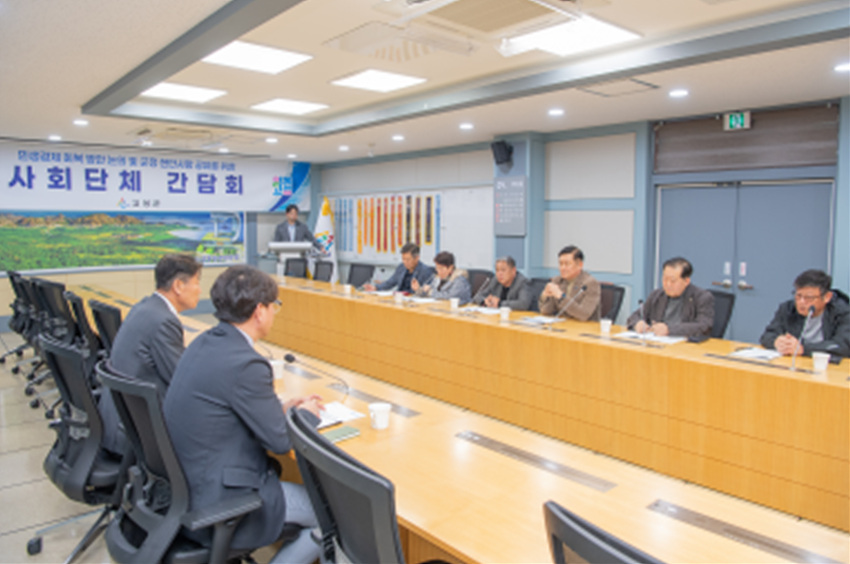 (강원=NSP통신) 조이호 기자 = 강원 고성군(군수 함명준)은 3일 군청 회의실에서 군정 현안사항 공유 및 민생경제 회복 방안 논의를 위한 사회단체 간담회를 진행했다.