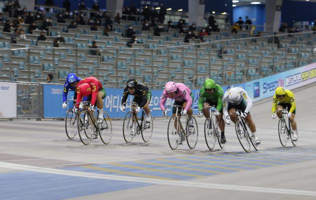NSP통신-광명스피돔에서 우수급 선수들이 결승선을 향해 질주하고 있다. (사진 = 국민체육진흥공단)