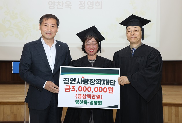 (전북=NSP통신) 김광석 기자 = 전북자치도 진안군은 부귀면 주민인 양찬욱․정영희씨 부부가 진안사랑장학재단에 장학금 300만원을 기탁했다고 밝혔다.