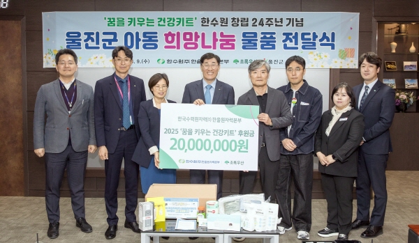(경북=NSP통신) 조인호 기자 = 한국수력원자력 한울원자력본부(본부장 이세용)는 지난 9일 창립 24주년을 기념해 기획한 ‘꿈을 키우는 건강키트’를 울진군 아동 98명에게 전달했다.