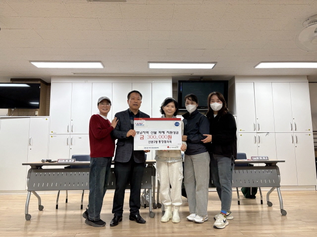 NSP통신-군포시 산본2동 통장협의회가 최근 발생한 영남 지역의 대형 산불 피해 복구를 지원하기 위해 성금 30만원을 기탁했다. 사진은 기탁 기념촬영 모습. (사진 = 군포시)