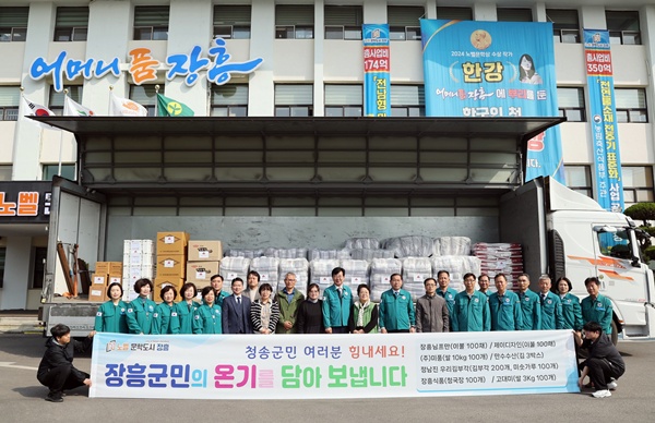 (전남=NSP통신) 김용재 기자 = 장흥군이 10일 대형산불로 큰 피해를 입은 경북 청송군에 이불, 쌀, 생필품 등 2차 후원물품을 보냈다.