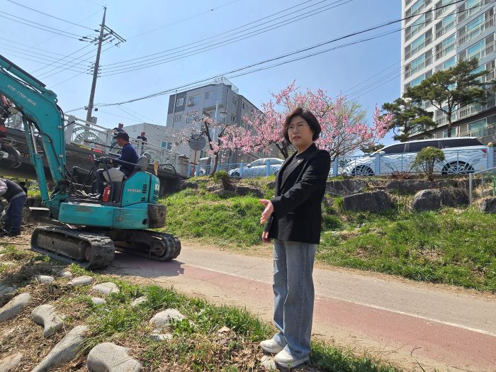 (경기=NSP통신) 김병관 기자 = 이애형 경기도의원(교육행정위 위원장)은 11일 ‘수원천변 산책로 환경개선’ 공사현장을 방문해 현장을 직접 확인하고 점검했다.