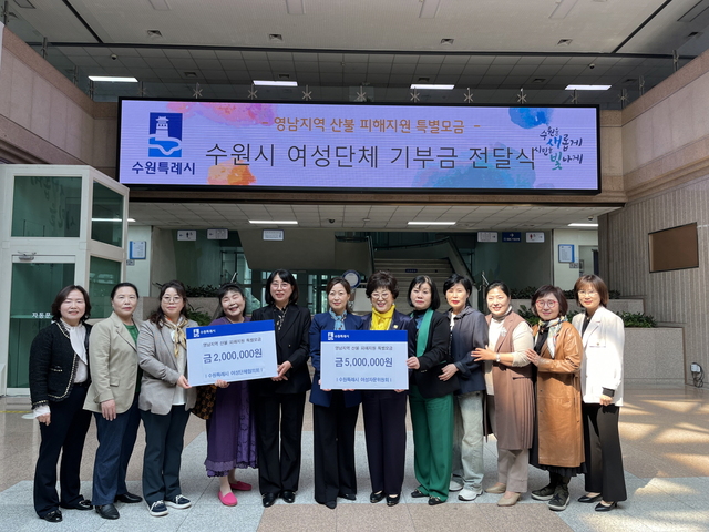 (경기=NSP통신) 조현철 기자 = 경기 수원시 여성자문위원회와 수원시 여성단체협의회가 영남 지역 산불 피해 지원을 위해 700만원을 기부했다.