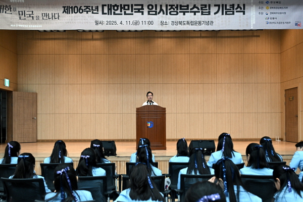 이날 기념식에는 김학홍 경상북도 행정부지사를 비롯해 권성연 경북부교육감, 이홍균 경북북부보훈지청장, 정대영 광복회 경북지부장과 광복회원, 독립유공자 유가족 등 300여 명이 참석해 대한민국임시정부 수립 106주년을 기념하고 대한민국의 독립을 위해 희생된 선열들의 숭고한 정신을 기념하는 뜻깊은 시간을 가졌다.