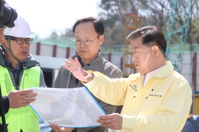 박승원 광명시장이 11일 오전 신안산선 공사장을 방문해 현장을 점검하고 있다. (사진 = 광명시)