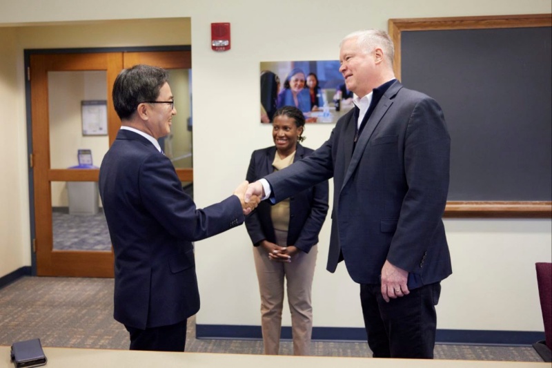 (경기=NSP통신) 김병관 기자 = 관세 외교 행보 중인 방미 이틀째인 10일(현지시간) 오후 김동연 경기도지사는 당초 순방일정 없던 스티브 비건 전 트럼프 정부(1기) 대북정책 특별대표와 미시간대 포드스쿨 5층 강의실에서 회동했다.