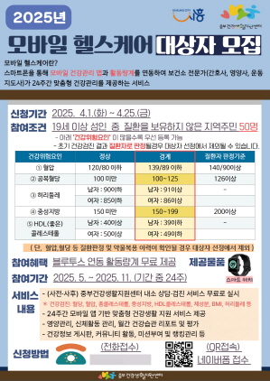 정성근 중부건강생활지원센터장은 “모바일 헬스케어를 통해 시민들이 스스로 건강을 관리할 좋은 기회가 되길 바란다”라며 많은 관심과 참여를 당부했다.