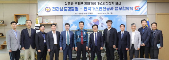 (전남=NSP통신) 김성철 기자 = 전남경찰청(청장 치안감 모상묘)은 전남경찰청 본관 5층 접견실에서 한국가스안전공사 광주광역본부(본부장 김대식) 및 전남 동부·서부지사와 실종사건과 연계한 치매노인 등 안전취약세대 타이머콕 보급 지원업무 협약식을 체결하고 상호 협력하기로 했다.