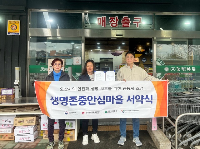 (경기=NSP통신) 조현철 기자 = 경기 오산시정신건강복지센터 부설 자살예방센터(센터장 홍종우)가 지난 14일부터 15일까지 세교농민마트, 대명유통 진로마트, 진로마트 오산점, N마트 은계점과 생명존중 문화조성을 위한 생명존중안심마을 서약을 진행했다.